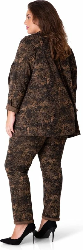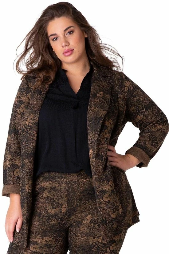 Wat een mooie blazer van Yesta (). Hij is gemaakt ineen heavy jersey met brokaat look. Ingeweven motieven van goudkleurige bloemen. De blazer is ongevoerd en de binnenkant van de tricot is uni. Het model draagt hierbij een broek in hetzelfde motief A32956.