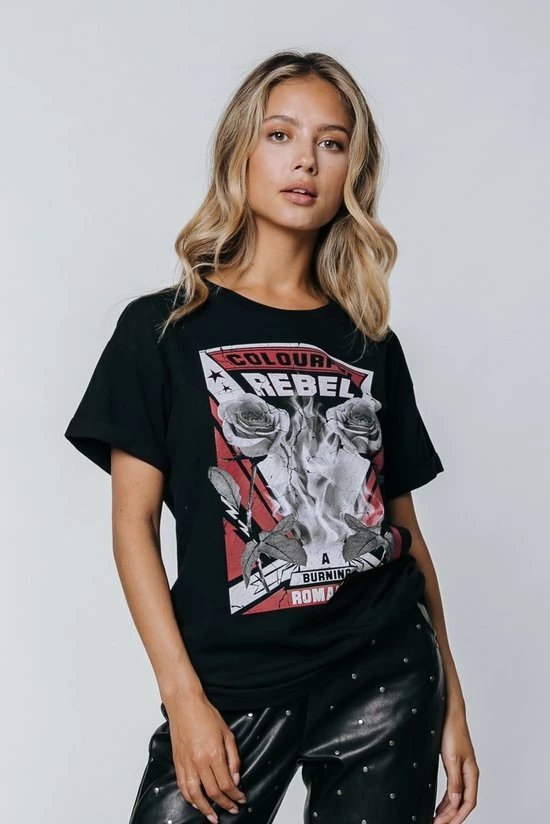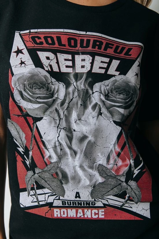 Colourful Rebel Burning Roses T-shirt Zwart Dames – Organisch Katoen – S