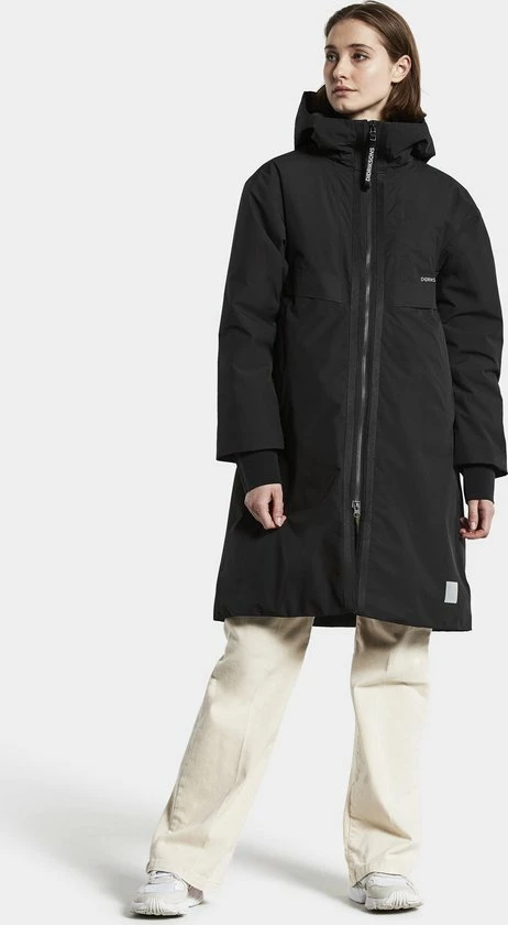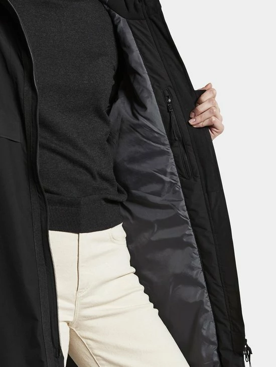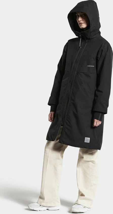 Aino is een warme A-lijn dames winterparka van Didriksons uit de Sportswear collectie met een sportief uiterlijk. De parka is gemaakt van een adeHerende zachte stof en volledig wind- en waterdicht (getapete naden). Aino heeft twee lange geribbelde neopreen manchetten voor extra warmte. De hoge kraag en de verstelbare capuchon bescherHeren je tegen kou en wind. De parka heeft vier zakken waarvan twee met ritsen.. De reflecterende details langs de ritssluiting zorgen voor extra zichtbaarheid in het donker. De voering is geverfd met een speciale verftechniek waarbij het verbruik van water, energie en chemicaliën tijdens de productie wordt verminderd. PFC-vrije waterafstotende afwerking.