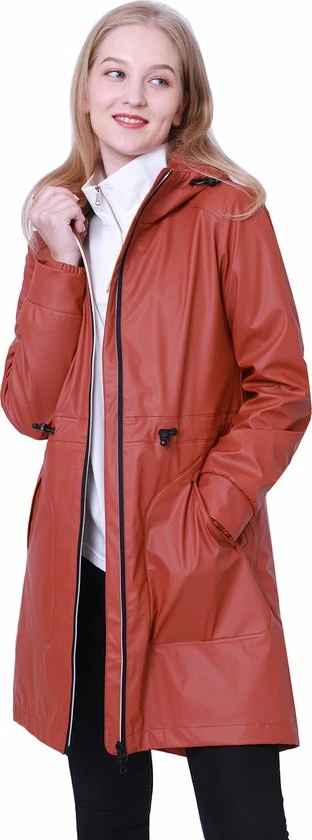 - Water- en winddicht: Deze 100% in PU afgewerkte regenjas is ontworpen uit milieuvriendelijk polyester. Het meest belangrijke voordeel van PU is dat ze permanent waterdicht is. Bovendien is de stof veel duurzamer dan neopreen of DWR. Het beschermt je tegen nat weer en houdt je warm en comfortabel.