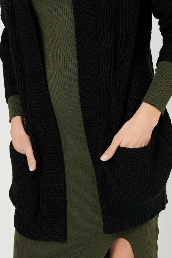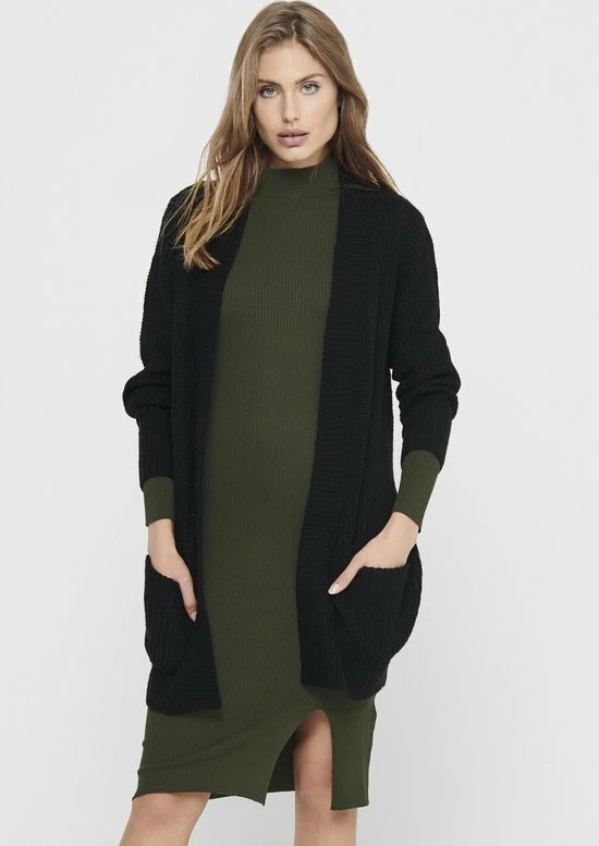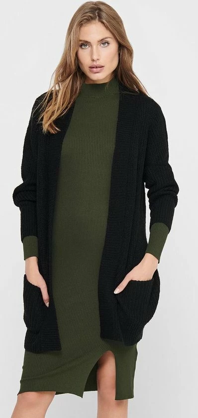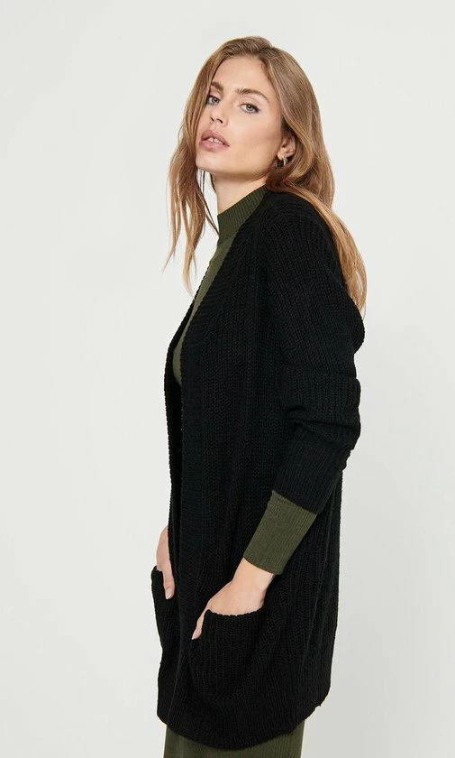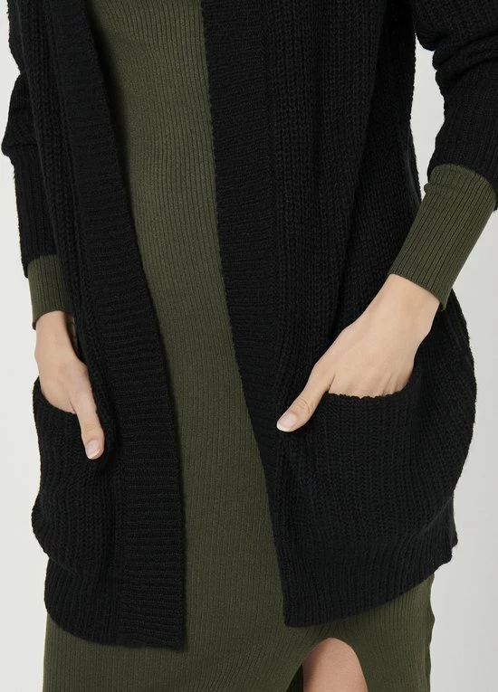JDY lang vest – Lange mouwen – 2 zakken aan de voorkant – Geribbelde randen