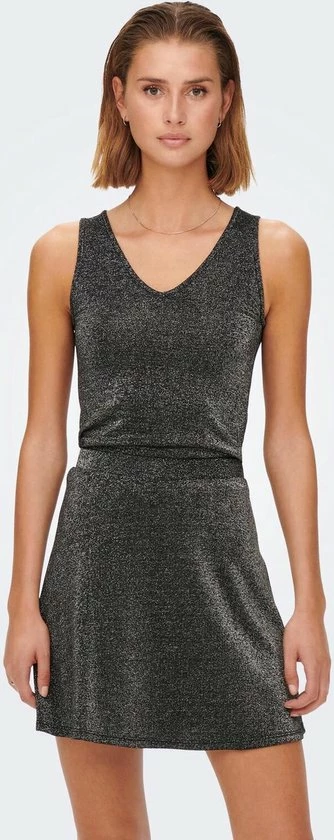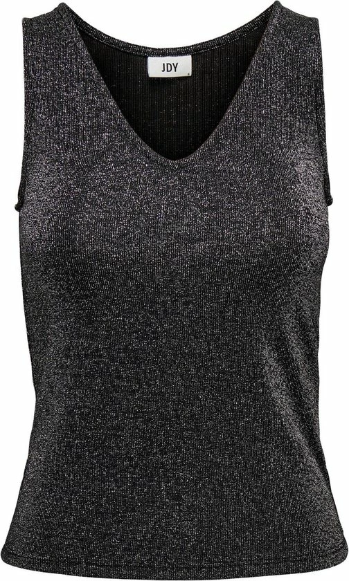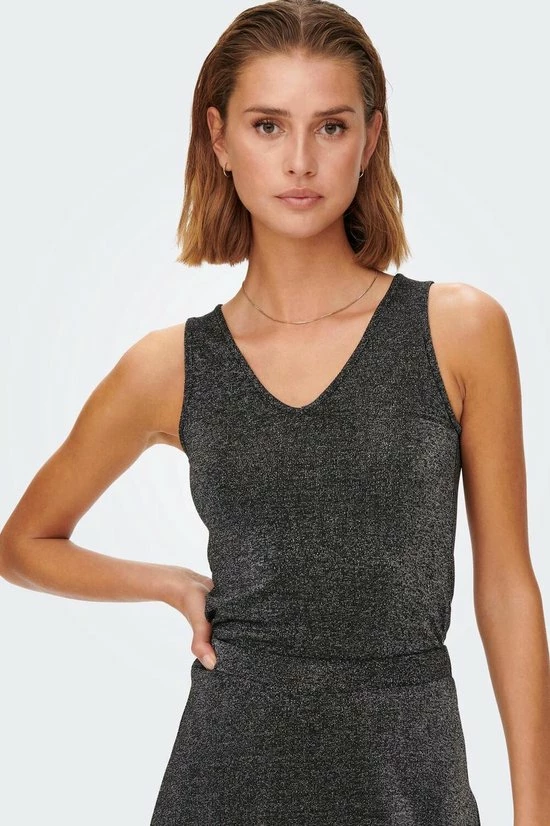Glitter top van JDY welke aan twee kanten te dragen is. Heb je zin om een V hals te dragen of liever een ronde hals? Bij deze mouwloze top kan het beide!