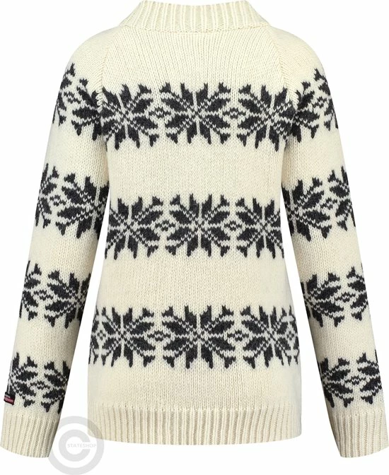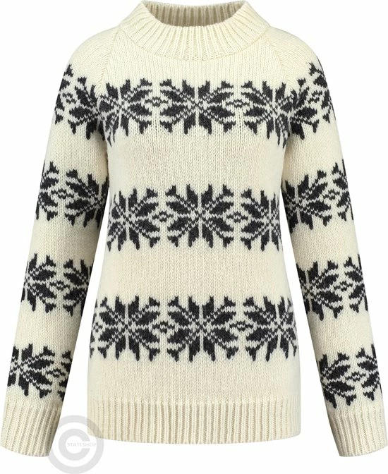 Originele IJslandse trui van de heetste editie met icestar patroon. Het is gemaakt van zwaar 3.GG (gage). wolgaren van 100% Noorse wol. De Icelandic sweater is warm & van ontzettend mooie kwaliteit! De trui is mooi aansluitend voor dames en heeft een mooie hoge col. Het is gemaakt met raglanmouwen voor een perfecte pasvorm en wordt geproduceerd door een van de beste wolspinnerijen van Noorwegen. Namelijk Gjestal wolspinners uit Oltedalen. Een echte winnaar in koude herfst en winter.