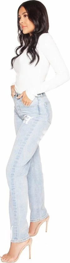 - Amber is 1.63 m, en draagt een S van de Graffiti Straight Leg Jeans