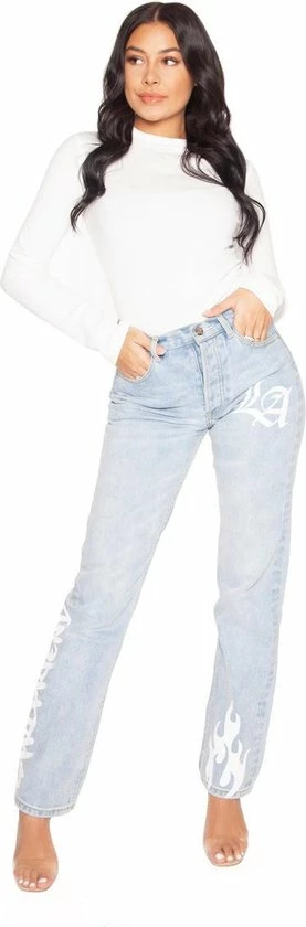 Wauw, we’re so obsessed! Deze broek is echt geweldig. De Straight Leg Jeans van LA Sisters is een enorm succes, en deze exclusieve uitgave beloofd een nog groter succes te worden vanwege haar stoere graffiti print. Deze broek heeft een high-waist fit en is voorzien van een grafische print op het been, zowel aan de voor als aan de achterkant. De broek heeft geen stretch, dus we adviseren een maat groter te nemen. Wist jij dat wij ook een Graffiti Denim Jacket hebben met grafische details?