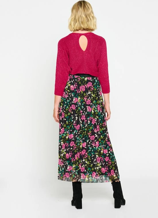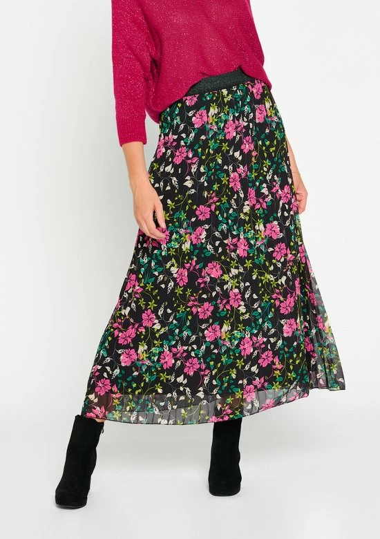 LOLALIZA Maxirok Met Bloemenprint – Zwart – Maat L
