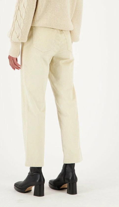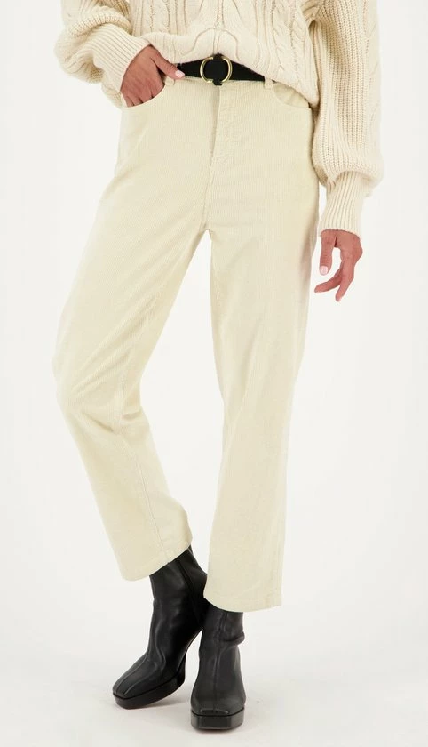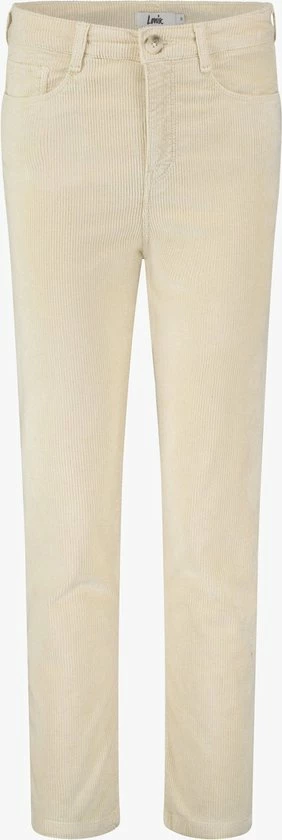 Deze beige broek van Louise ziet er stijlvol én warm uit. Dit stuk is gemaakt van trendy corduroy en heeft een 7/8e lengte. Combineer met neutrals of ga voor leuke kleurtjes. 5-pocketmodel met knop en rits.
