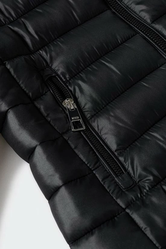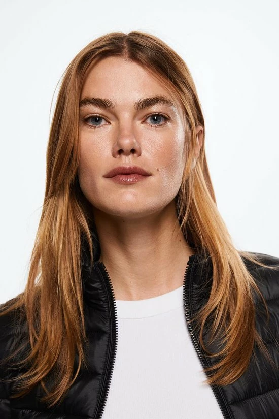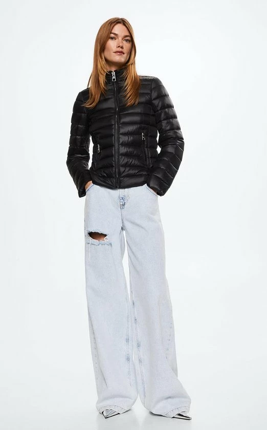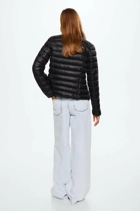Gewatteerde tussenjas van Mango met doorgestikte naden. Dit model heeft een highneckkraag en lange mouwen. De jas sluit met een rits en heeft twee ritszakken aan de voorkant.
