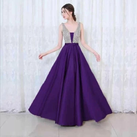Merkloos V-hals Paillettenjurk Banket Jaarlijkse Avondjurk, Maat: S (paars)-Geen