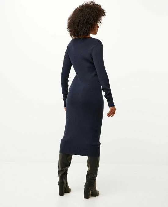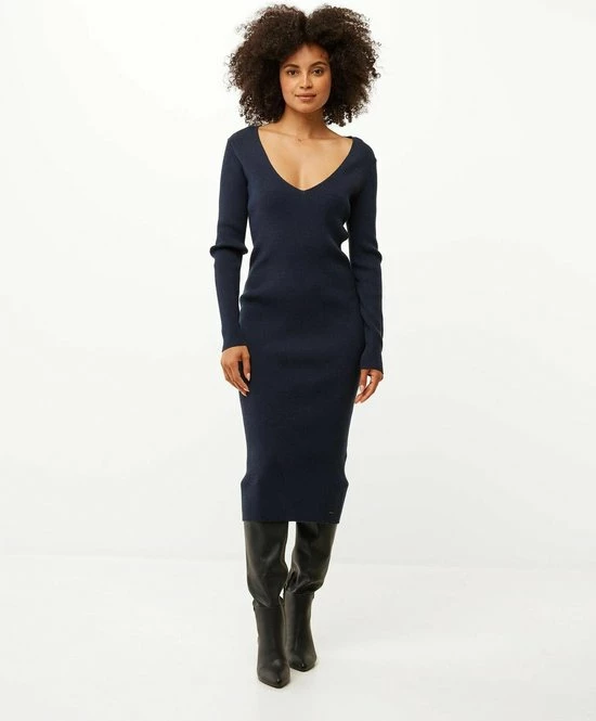 Mexx Dames V-neck Gebreide Jurk Navy
