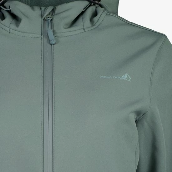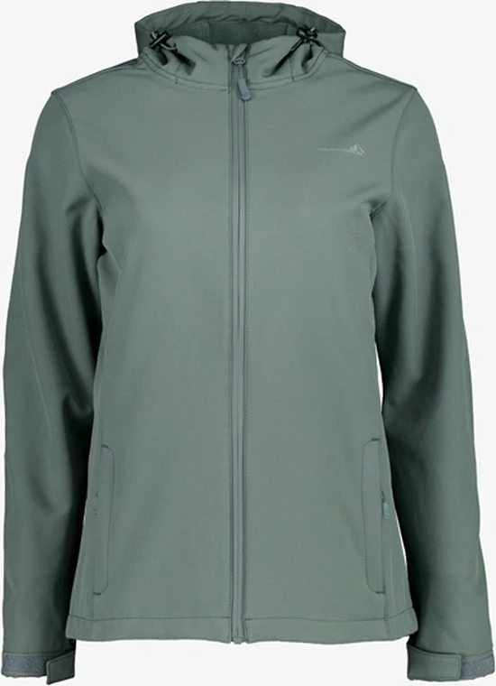 Groene softshell jas voor Dames uit de Mountain Peak collectie. Voorzien van een kinbeschermer, ritssluiting en vaste capuchon met aansnoerkoordjes. De softshell jas heeft twee zakken met ritsen en is vervaardigd van winddicht, ademend en warmte regulerend materiaal. De ritsen zijn waterdicht en beschikken over windstoppers. Voorzien van verstelbare boorden met klittenband zodat je de jas goed kunt laten aansluiten. De outdoor jas is gemaakt van 95% polyester en 5% elastaan en heeft een waterkolom van 3.000 MM.