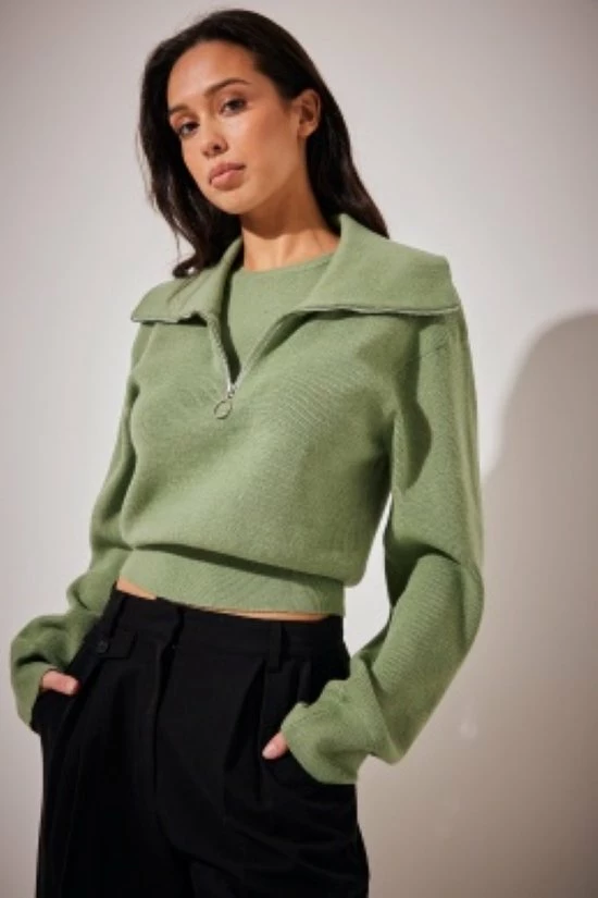 | Model | Half, Zip, Layered, Knitted, Sweater |