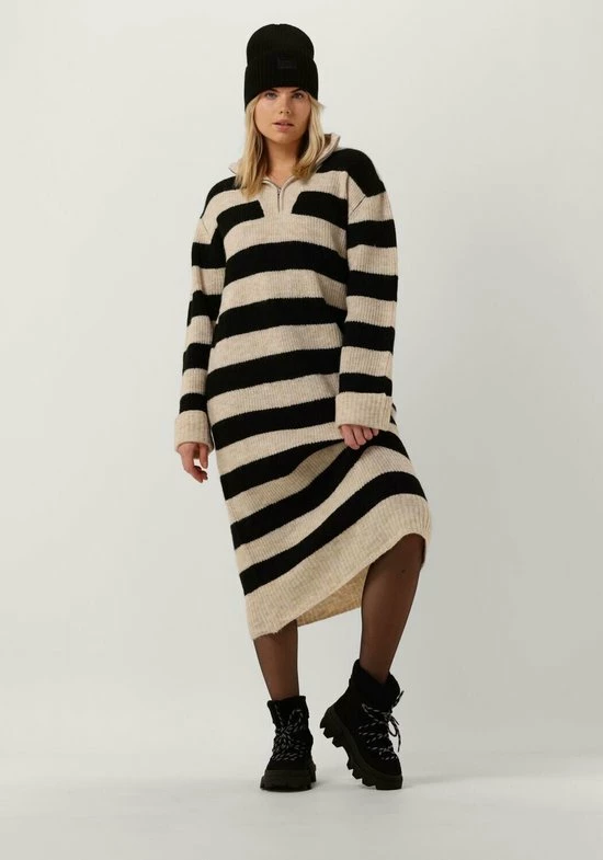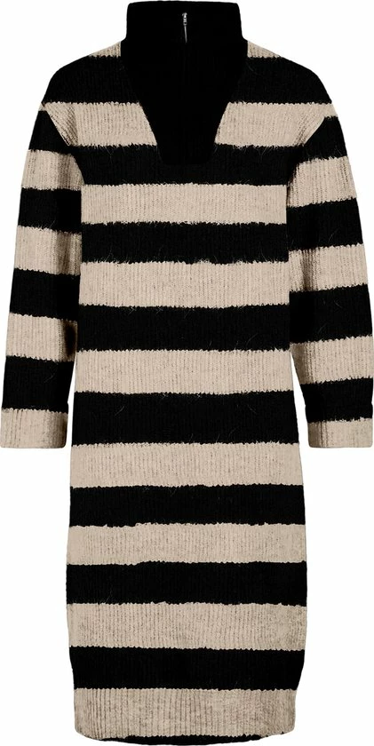 Loungewear of werkkleding? Wat de gelegenheid dan ook is, jij voelt je heerlijk comfortabel in een gebreide jurk. Gebreide stof ontstaat door het in elkaar grijpen van lussen garen voor rekbare, warme en knusse kledingstukken. – Type product : Gebreide jurk- Hals : Hoge hals- Mouw lengte : Lange mouwen- Mouwen : Wijde mouwen- Manchetten : Mouwuiteinden met omslag- Lengte : Boven de knie- Voering : Ongevoerd- Details : Rits detail