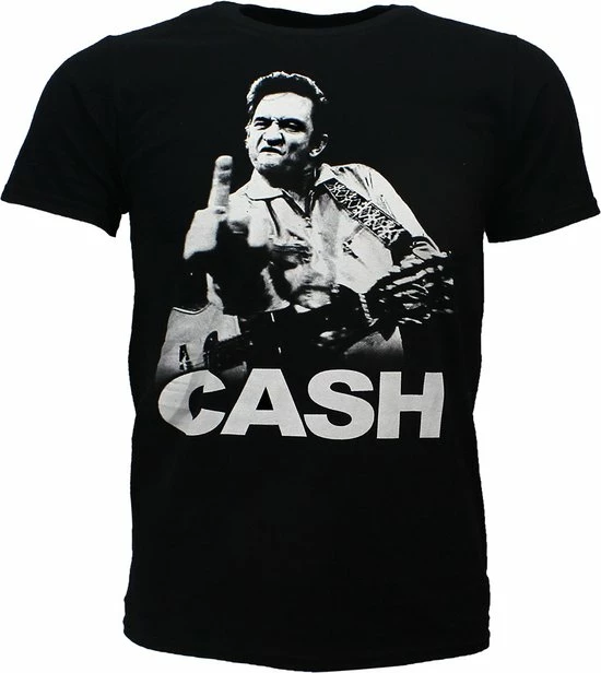 POPMERCH Johnny Cash Middle Finger T-Shirt Zwart – Officiële Merchandise