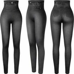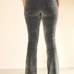 New Star Dames Flare Broek – Florence – Zwart/grijs Ribstof – Dames Corduroy Broek – L33 – Maat 34