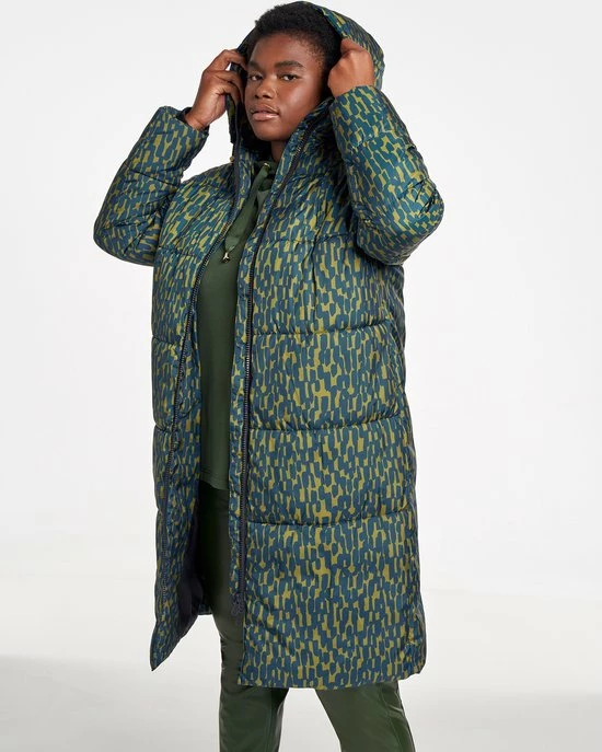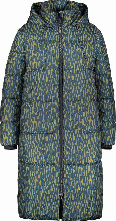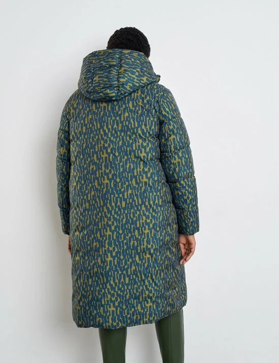 SAMOON Dames Gewatteerde Mantel Met Capuchon Dark Star Fruit Gemustert-52