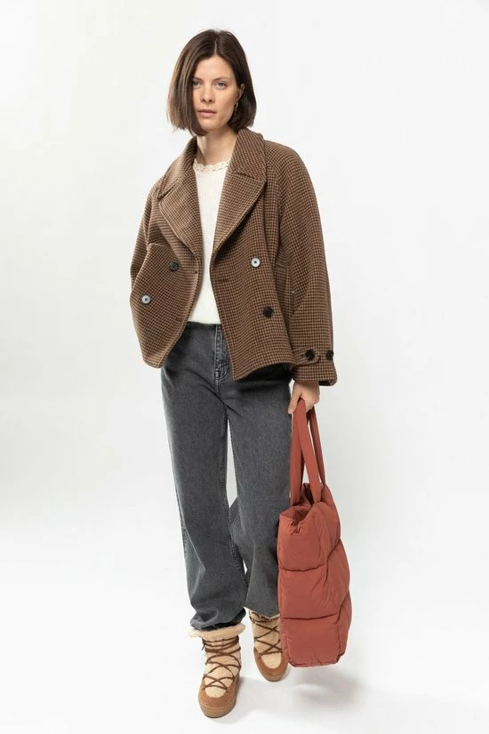 Sissy Boy Sissy-Boy – Korte Wollen Trenchcoat Met Ruitjes