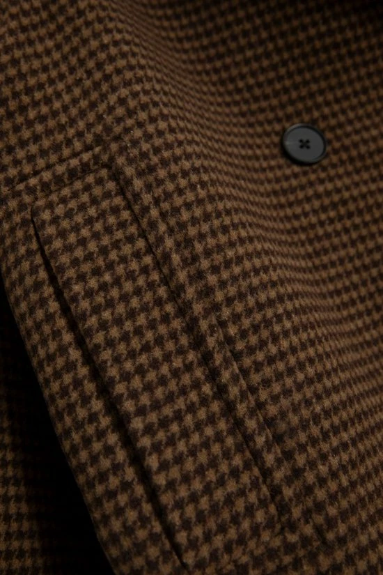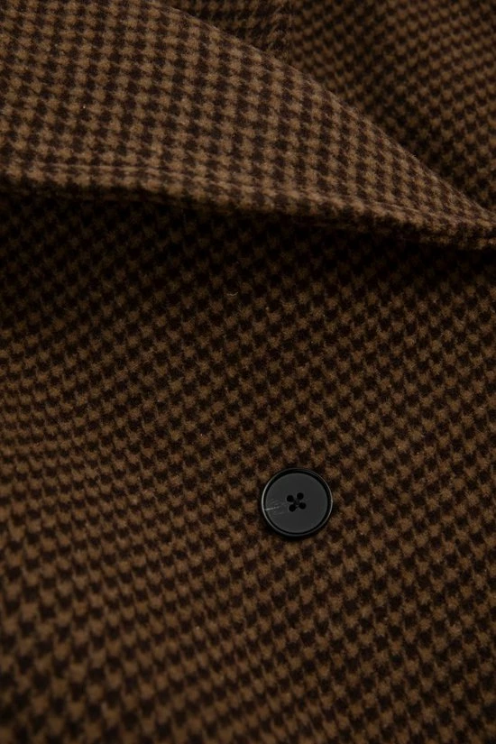 Een klassiek pied de poule ruitje versierd deze korte bruine trenchcoat van Sissy-Boy. Hij heeft een grote reverkraag, een dubbele rij knopen en 2 zakken aan de zijkant. De jas is gemaakt van 25% wol, 65% polyester en 10% others.