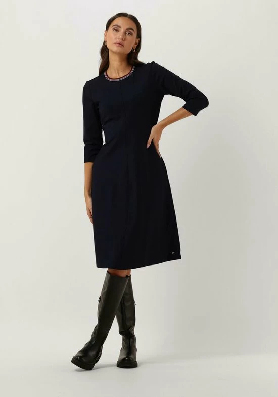 Donkerblauwe Tommy Hilfiger Midi jurk FIT + Flare Punto Midi Dress