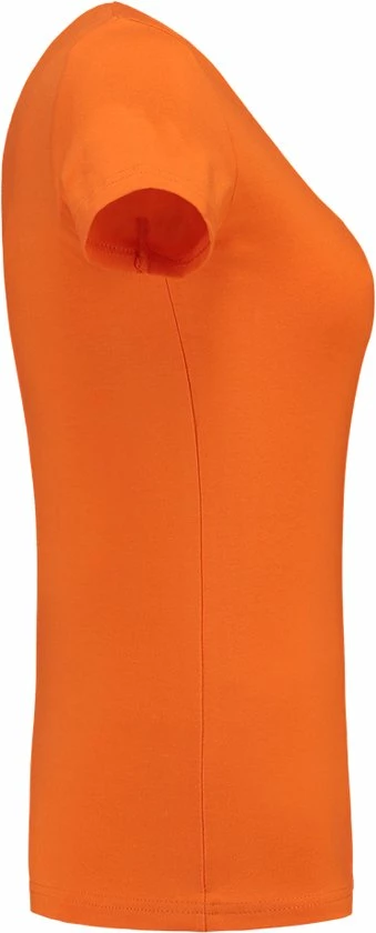 Het slim-fit dames T-shirt is gemaakt uit 95% gekamd, ringgesponnen katoen en %5 Spandex. Hierdoor krijgt het shirt de essentiële sterkte voor op de werkvloer. Bovendien zorgt het materiaal voor extra stretch en comfort voor de drager. Het T-shirt kan worden geleverd in een groot aantal kleuren en maten.