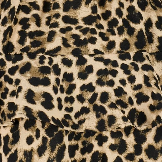 Kort rokje met luipaardprint voor dames. Voorzien van een elastische tailleband en ruches. De mini rok heeft all over luipaardprint en is gemaakt van 96% polyester en 4% elastaan.