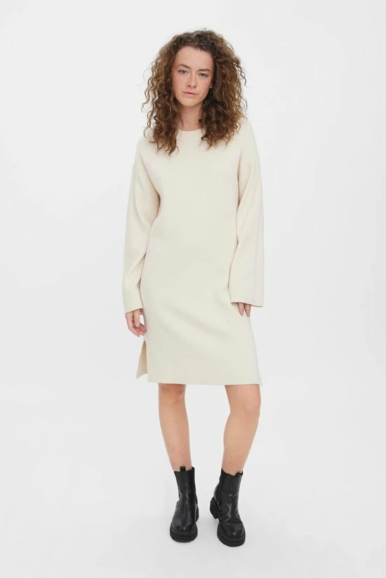 Vero Moda Jurk Vmgold Needle Wide Ls O-neck Dress 10271183 Birch Dames Maat – L