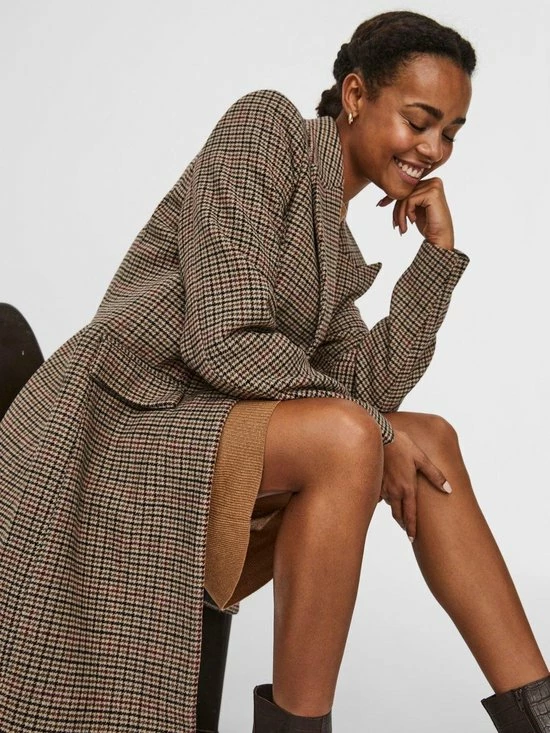 VERO MODA VMBLAST CHECK LONG WOOL JACKET GA Dames Jas – Maat XS