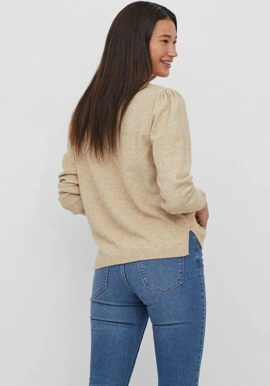 Vila Trui Viril V-neck L/s Cable Knit Top 14076024 Natural Melange Dames Maat – L