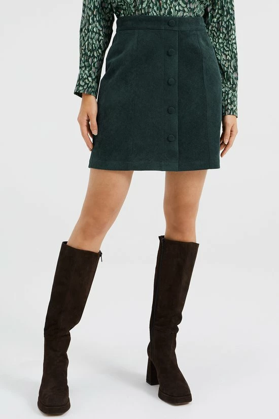 Een regular fit rok van corduroy met toegevoegde stretch. Het korte model heeft sierknopen op het voorpand, een ritssluiting op het achterpand en een onderrok.